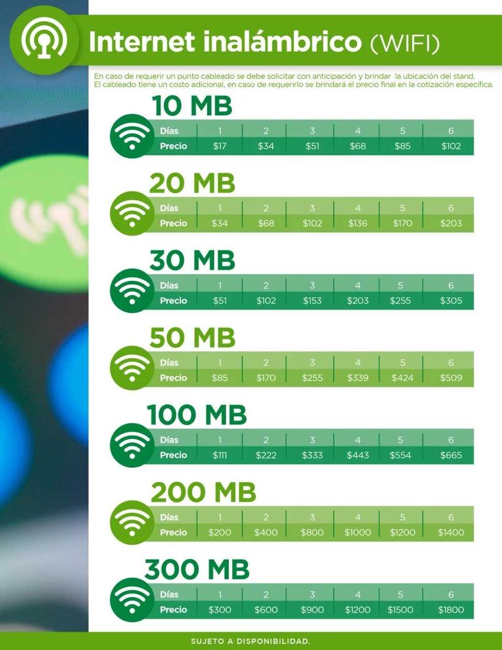 Este servicio estará disponible durante los días del evento para facilitar su acceso.