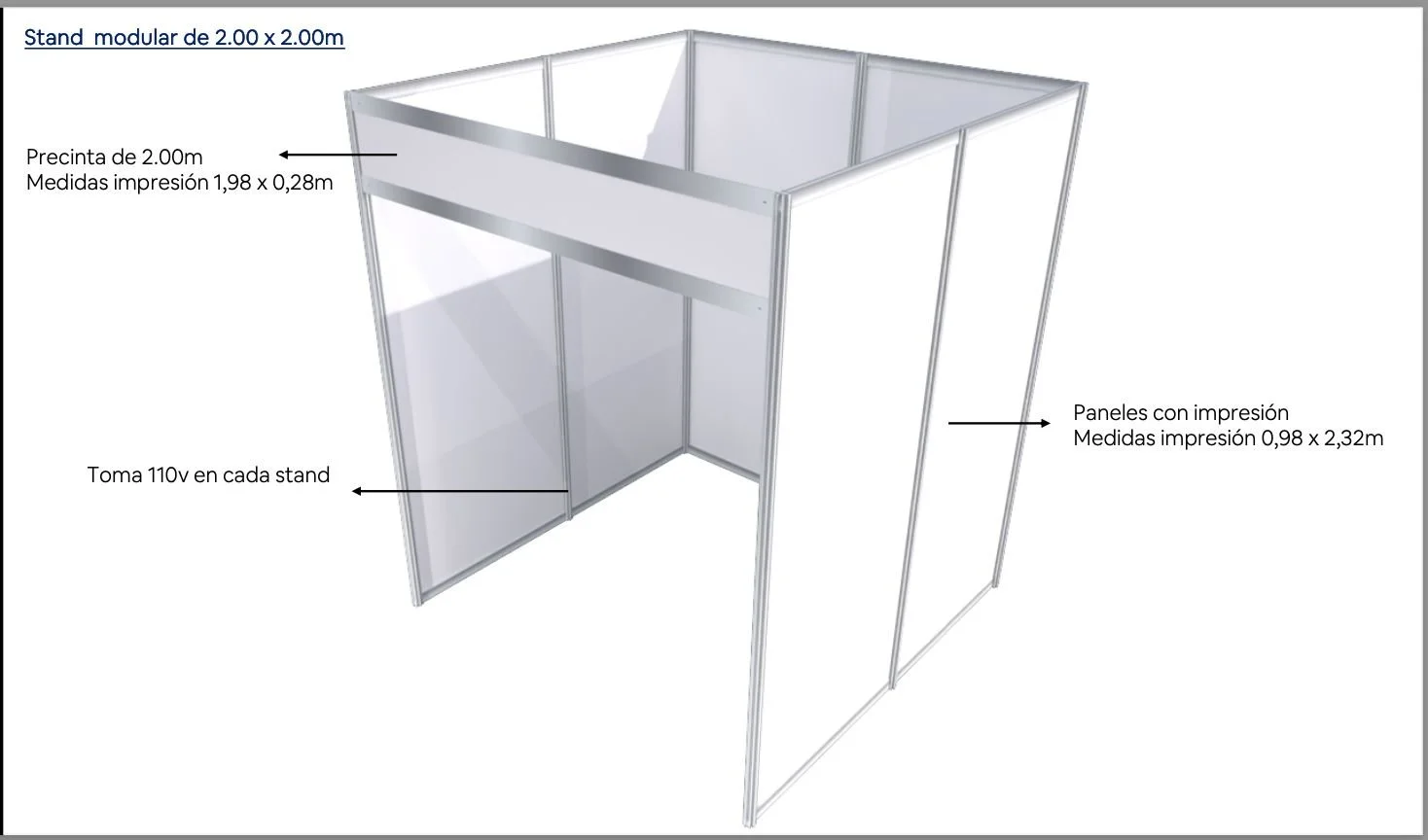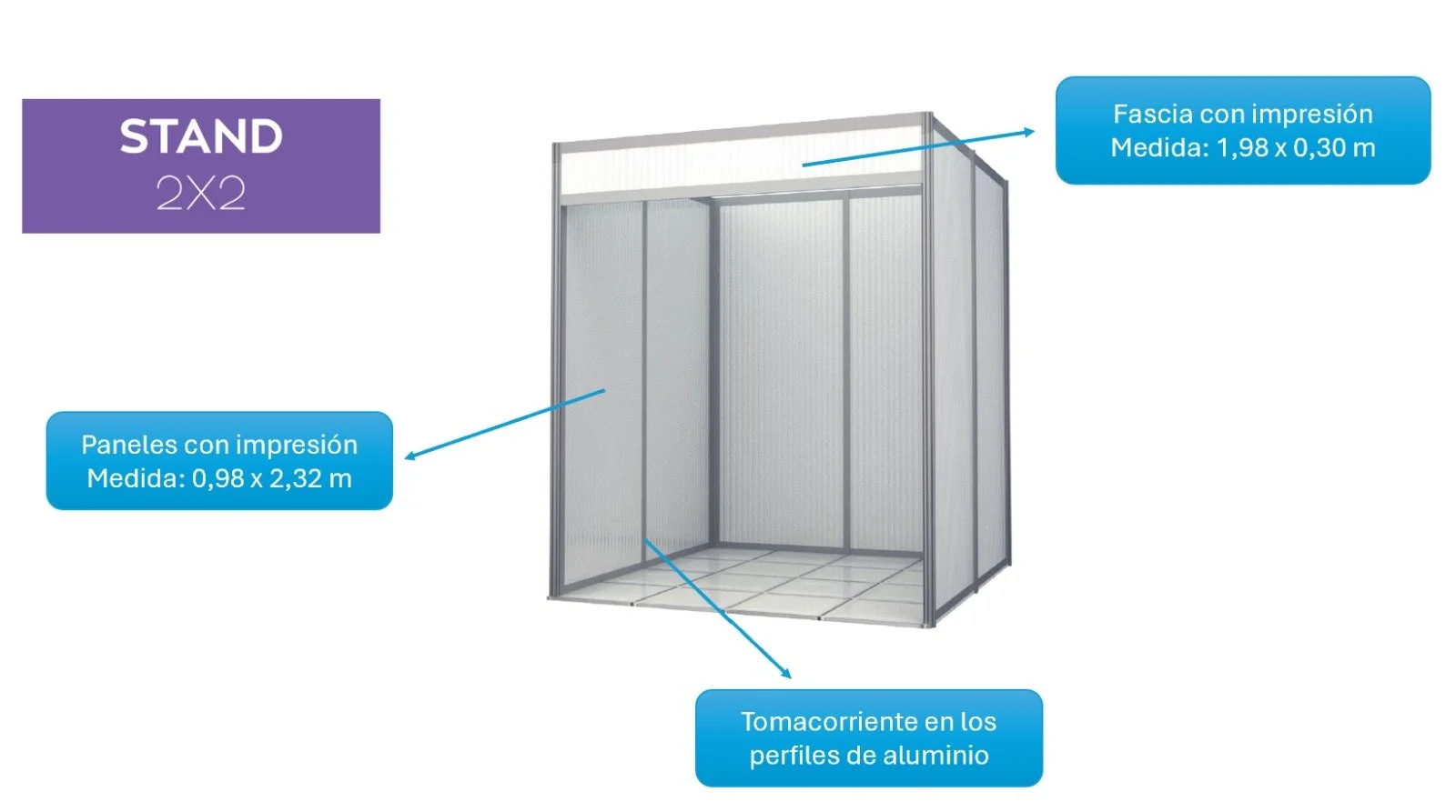 📐 Importante: Las medidas de los stands pueden variar ligeramente según el proveedor. Por eso, le recomendamos consultar la guía de tamaños específicos para cada empresa que encontrará a continuación.